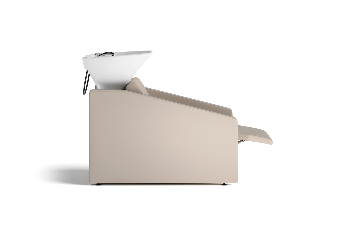 Disponível em versão base, a Hester pode ser equipada com apoios de pés elétricos, oferecendo um ajuste preciso à posição do cliente e promovendo uma experiência ergonómica durante todo o serviço. A opção de massagem acrescenta uma componente de bem-estar que transforma o banho num momento de completo relaxamento. A opção de incluir um lava-loiça preto reforça o seu carácter sofisticado, proporcionando um contraste moderno que valoriza o design geral.